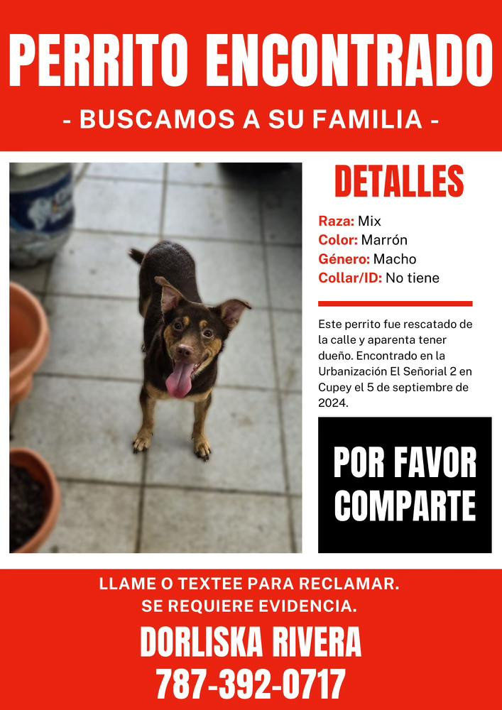 La Junta Directiva de la Asociación de Residentes ESSSVE Inc., informa que ha encontrado un perrito perdido que aparenta tener dueño.